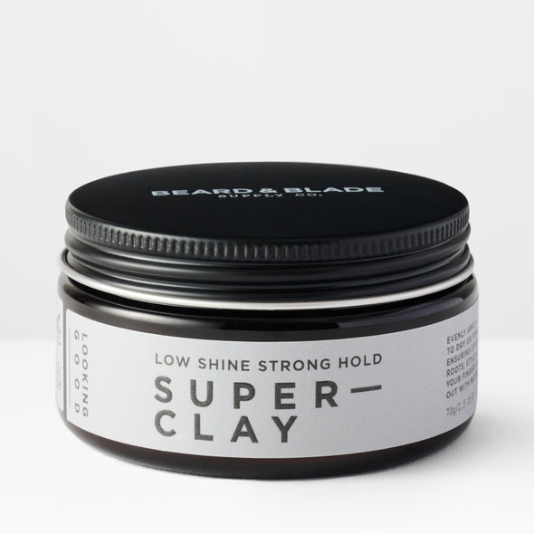 Our Beard & Blade Super Clay is a high-performance styling product that offers a strong, pliable hold that keeps your hair in place throughout the day, while maintaining a natural, matte finish for a modern, textured look. Our clay is an excellent alternative to other popular clay pomades, delivering superior performance and versatility while also being easier to wash out.